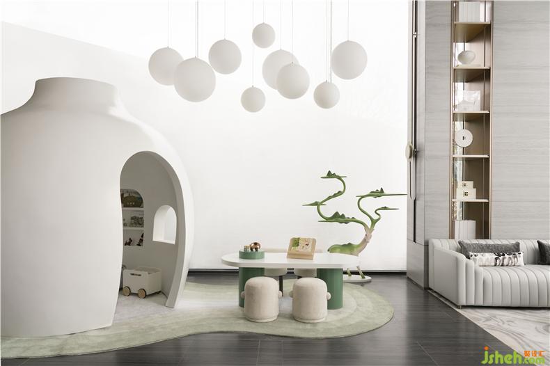 對(duì)于一個(gè)全生命周期的體驗(yàn)中心而言,兒童區(qū)不僅是功能上的延伸,室內(nèi)設(shè)計(jì)師還賦予了人文的關(guān)懷。為孩子們打造一個(gè)自然書(shū)屋,武漢售樓處設(shè)計(jì)在這個(gè)紛繁嘈雜的社會(huì)里,有一片可以讓童心盡情馳騁的地方。