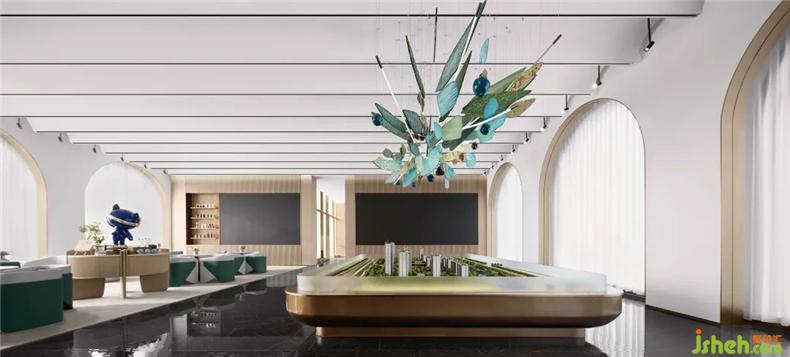 伴隨著光影流動(dòng)進(jìn)入二樓,沙盤區(qū)以通感的手法融匯感官與視覺(jué)的連通,實(shí)驗(yàn)性的重構(gòu)與延續(xù)。設(shè)計(jì)師受到自然世界生命的獨(dú)特性和復(fù)雜性的啟發(fā),運(yùn)用玻璃定制出與空間共生的燈光雕塑,室內(nèi)設(shè)計(jì)師它通過(guò)隨機(jī)性創(chuàng)造和諧的方式,將生命帶入室內(nèi),令空間飽含生命的活力與意志的自由。