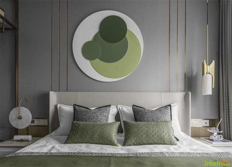 高級(jí)灰的睡眠空間,讓不同飽和度的綠色跳躍其中。