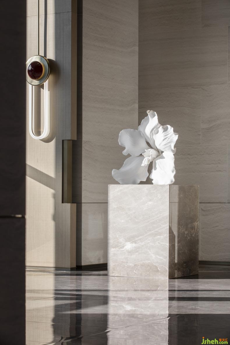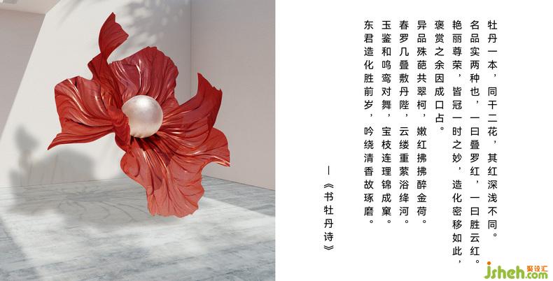 步入前廳,空間線條均衡對稱的排布和莊重的建筑色彩,成就著高度的秩序感;裝修設計風華曠代的天彭牡丹以迥然相異的現(xiàn)代材料呈現(xiàn),不禁讓人直觸內心所向:牡丹開得最盛的時代,何嘗不是我們所向往的最好的時代?