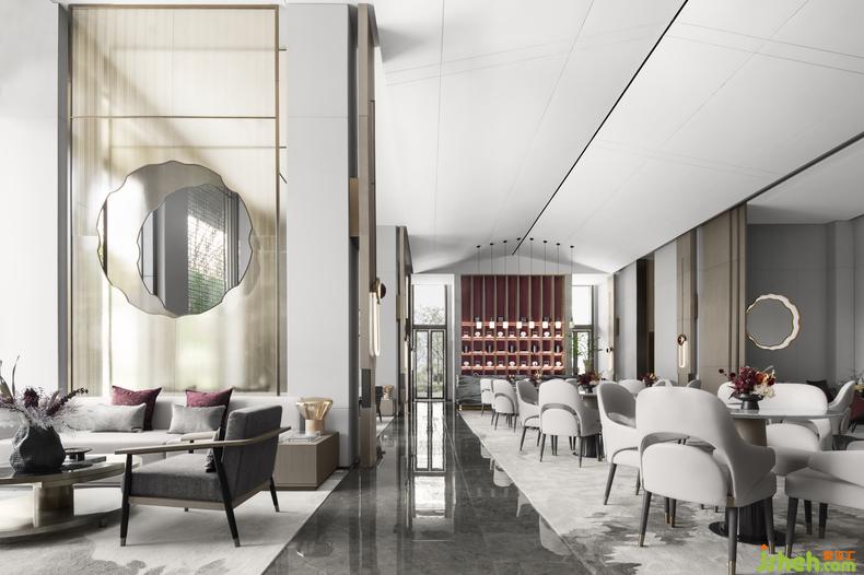 若說(shuō)梯間的風(fēng)格是“自在飛花輕似夢(mèng)”,那么休閑區(qū)則鋪陳了“無(wú)邊絲雨細(xì)如愁”的空靈境地。