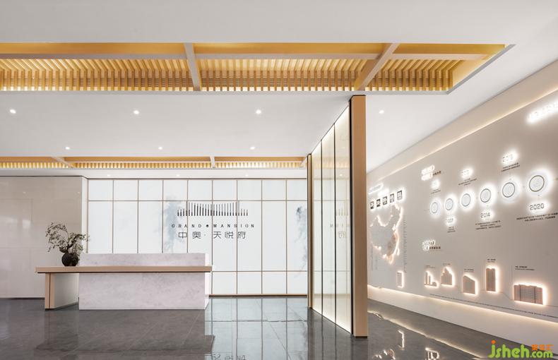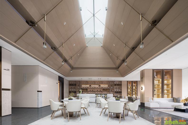 具有宋代建筑木結(jié)構(gòu)藝術(shù)特點的前廳,提取當(dāng)?shù)厍陮W(xué)府“河洲書院”的設(shè)計元素進(jìn)行拆解與重組,售樓處設(shè)計連結(jié)當(dāng)?shù)厝宋幕虻墓缠Q,運用現(xiàn)代的設(shè)計語言重現(xiàn)宋式美學(xué)。