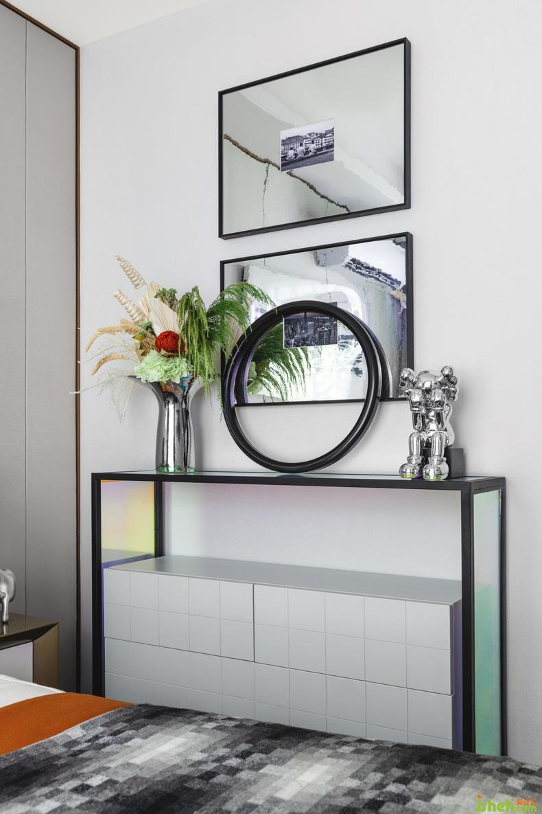 將KAWS和哈哈鏡一起點綴整個空間,表達自我追求品質(zhì)生活以及活力四射的處世態(tài)度。