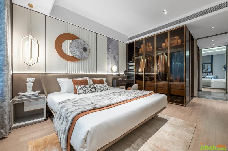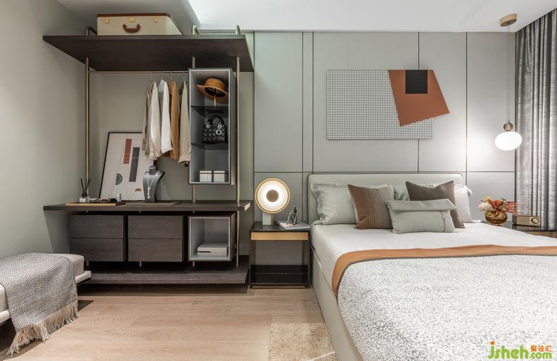 次臥延展整體空間一致的視覺表達(dá)以外,在藝術(shù)的運(yùn)用上多了一份包容,室內(nèi)設(shè)計(jì)師這份包容留給父母,留給遠(yuǎn)道而來的客人。