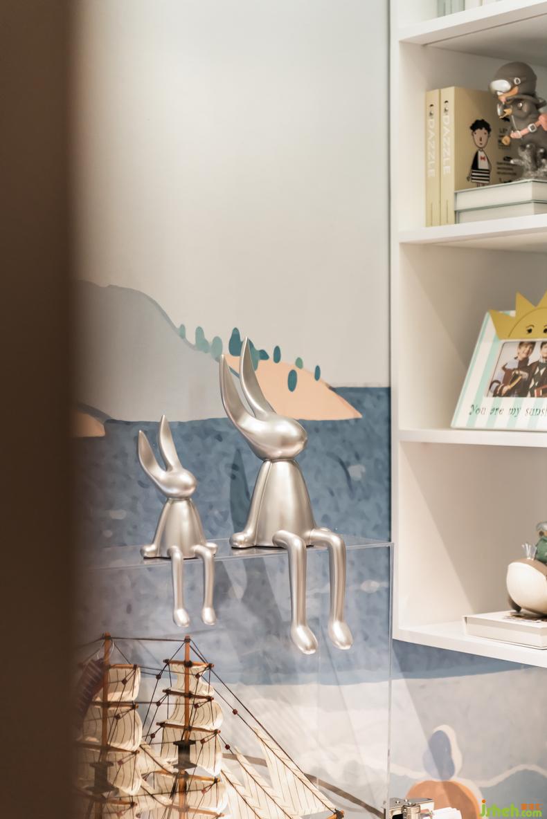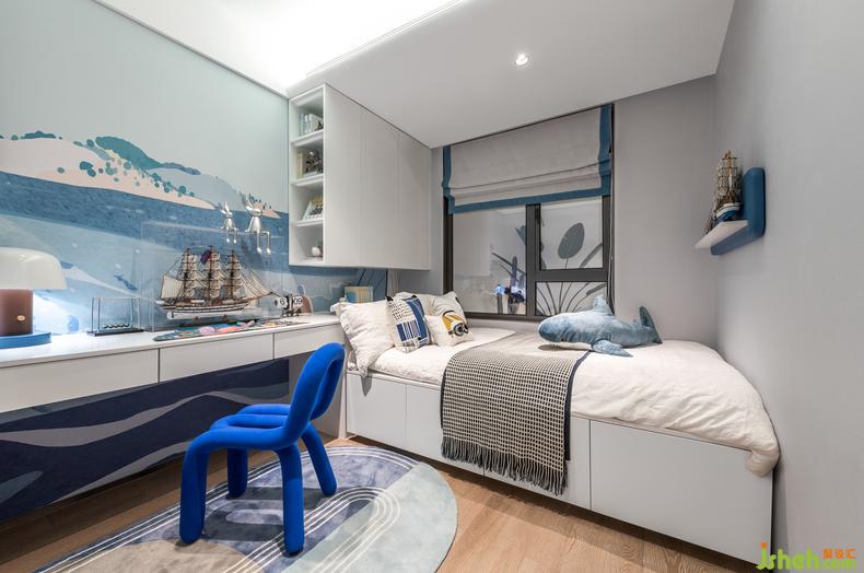 將海底搬入孩子的臥室,在藝術(shù)化的轉(zhuǎn)譯中詮釋對(duì)童真的理解。揚(yáng)帆入夢(mèng)的小床、在墻面上游動(dòng)鯨魚、富含趣味的軟飾……讓孩子成為自己的船長(zhǎng),在夜里起航。除了滿足他的童真和興趣之外,更是融入了一份優(yōu)雅、一份傳承。
