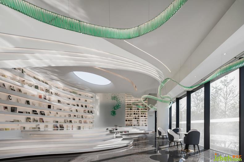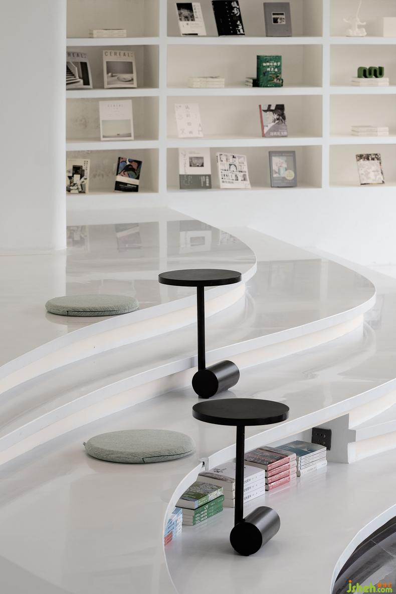 波浪狀的臺(tái)階勾勒出延綿如山體的一抹曲線,使得空間的觀賞性與功能性相融,保持在一種流動(dòng)的平衡狀態(tài)。作為復(fù)合式藝文空間,得以承載更多的訪客流量,醞釀著新鮮的互動(dòng)關(guān)系,閱讀與社交在這里發(fā)生