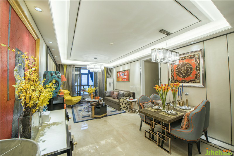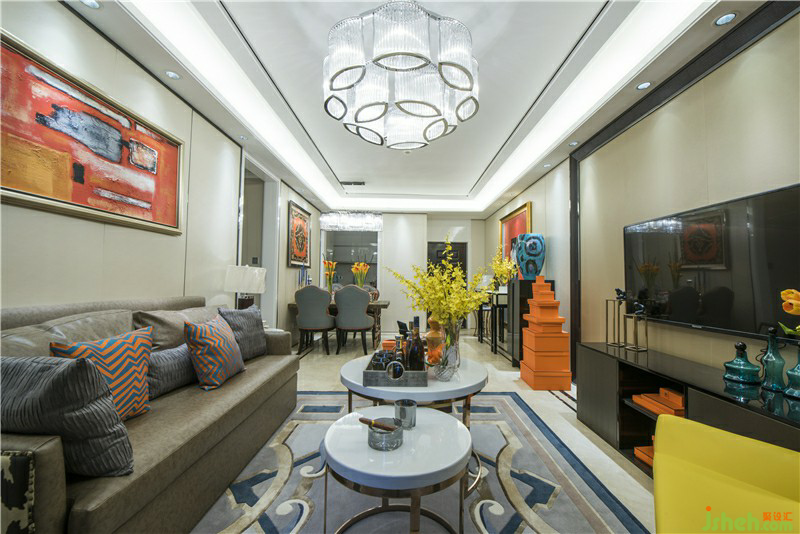 墻面大幅的藝術(shù)畫(huà)布藝的墻面裝飾簡(jiǎn)單不單調(diào)的造型都體現(xiàn)了作為服裝設(shè)計(jì)師的主人獨(dú)特的品位與藝術(shù)修養(yǎng)在暖暖的橙色里幸福滿溢