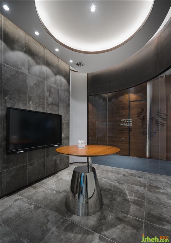 小智能站立會議室將地面的水泥瓷磚延伸至壁面,營造明確的空間屬性。金屬桌腳既色澤明亮,打破沉悶嚴(yán)肅的氣氛,給人耳目一新的體驗(yàn),又富有質(zhì)感,凸顯出現(xiàn)代化企業(yè)的個性與內(nèi)涵。辦公室設(shè)計(jì)