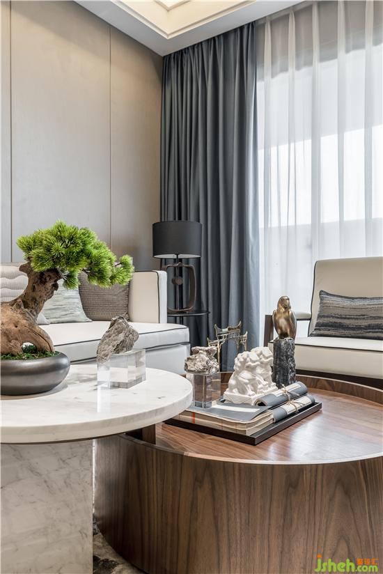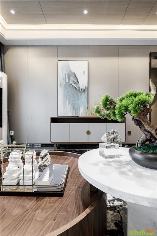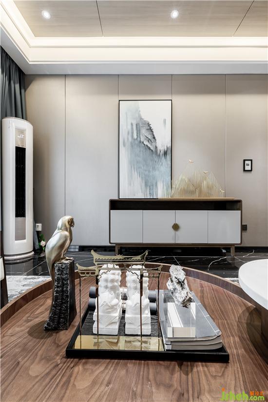 1、結(jié)構(gòu):硬裝空間采用簡(jiǎn)約的塊面感和果斷的直線條,體現(xiàn)山的剛性;軟裝采用布藝和弧形家具,體現(xiàn)湖水的柔軟;