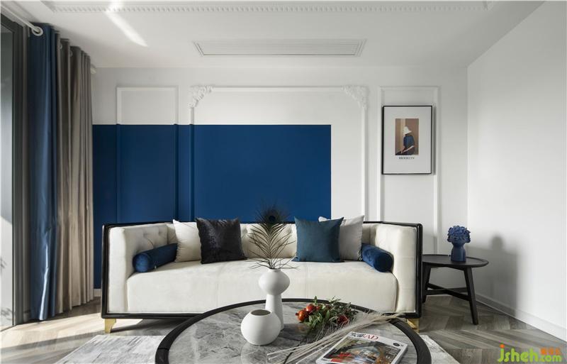 這張圖片妥妥的體現(xiàn)了“歲月靜好,現(xiàn)世安穩(wěn)”的生活現(xiàn)狀。沙發(fā)背景墻我沒有滿刷克萊因藍(lán)色,我希望多留白,對比度強(qiáng)烈,更能使這個(gè)空間干凈,明亮。藍(lán)色穿過線條后,讓原本有弧度的線條被切割得有棱有角有硬度。南京室內(nèi)設(shè)計(jì)師右邊的這幅畫配上背景色,契合度很高,這幅畫不浮夸不張揚(yáng),簡潔干凈,透過畫面,能感受到畫中人物的沉穩(wěn)。畫的背后是強(qiáng)電箱,畫尺寸是按照線條的寬度選的。(安裝畫時(shí)有個(gè)小插曲,強(qiáng)電箱蓋子拿掉以后,箱體有點(diǎn)凸出來,畫不好處理,后來切割了凸出來的一點(diǎn)箱體,這幅畫就妥妥的掛好了。