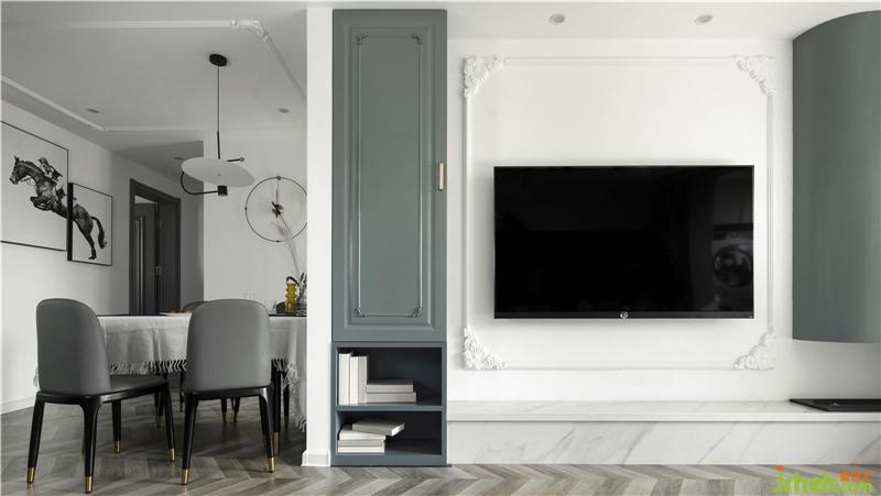 這套案子我并沒有給它定什么具體的風(fēng)格,其實(shí)有點(diǎn)混搭,既希望簡約點(diǎn),又希望有一些喜歡的修飾在里面,電視背景墻以柜子形式出現(xiàn),除了 有一定的收納以外,還是希望有些特色。柜體的顏色確定好以后,在網(wǎng)上找了幾家定制柜彩色柜門的賣家進(jìn)行對比,門上面需要有一點(diǎn)線條花紋。南京室內(nèi)設(shè)計(jì)師把顏色告訴賣家后,她們做了幾個(gè)小色板寄給客戶,我確定好具體精準(zhǔn)的顏色以后,油漆師傅對著門板色噴涂柜體,這樣避免了出現(xiàn)太大的色差。電視柜是內(nèi)部木工板基層制作,外面貼雅士白大理石,最右邊鑲嵌了一個(gè)蒸汽壁爐,冬天可以開著壁爐,暖洋洋。