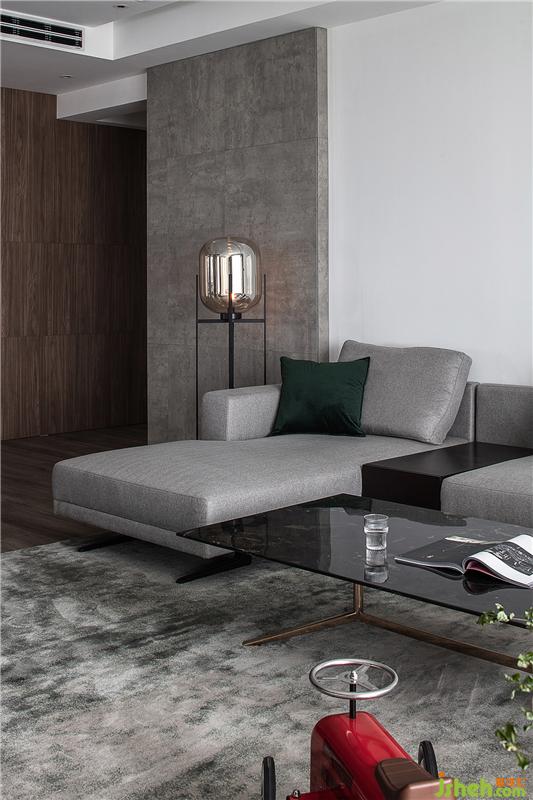 柔軟的地毯和灰色沙發(fā) 一抹紅是色彩焦點