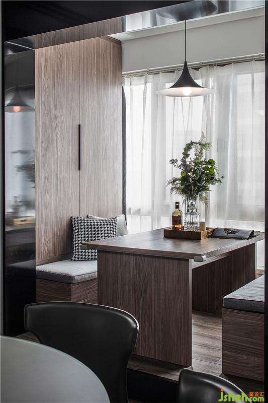 獨立式酒柜放在餐廳對面 滿足男業(yè)主的收藏和品酒需求