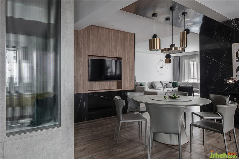 環(huán)形動線的餐廳 連接玄關 客廳和廚房 十分靈活