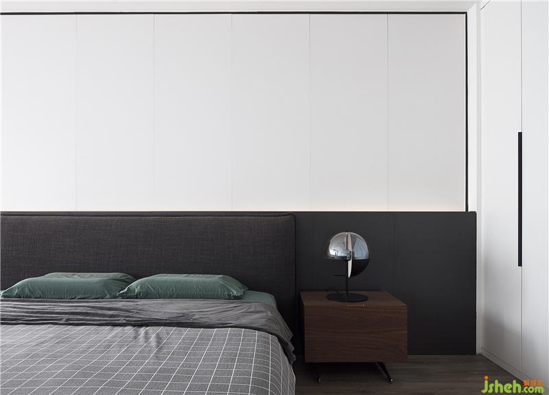 主臥背景墻采用定制墻板 結(jié)合隱藏式燈帶