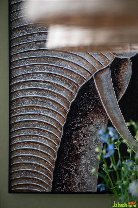 餐廳掛畫使用特殊的材質(zhì)和紋理,大象的廓形大氣別致,結(jié)合復(fù)古綠墻面如若置身天然森林,給主人以更加愜意放松的用餐感受。