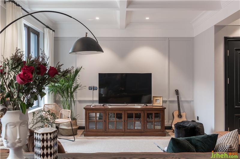 整面背景墻橫貫客廳,天津別墅設(shè)計開放格和隱蔽柜門的組合,物品收納井然有序,既可以擺放屋主精心收藏的工藝品,又可以把孩子的物品、玩具都收納在內(nèi),隱藏起來。