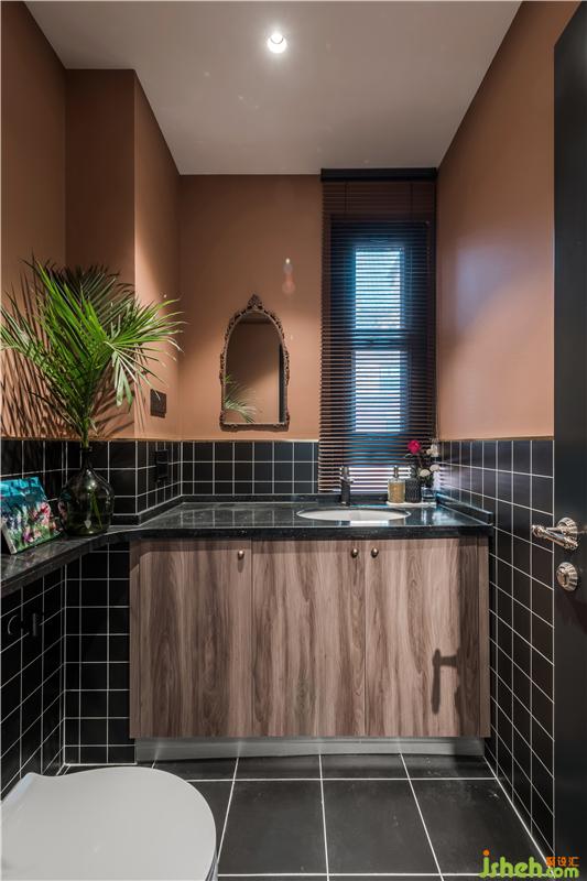 洗手間是一個(gè)比較私密的空間,天津別墅設(shè)計(jì)除了考慮風(fēng)格,我們更多的想要達(dá)到一種空間氛圍,安靜,古典,所以選用了小黑磚搭配復(fù)古橘色,這是一個(gè)很妙的顏色,復(fù)古又有趣。