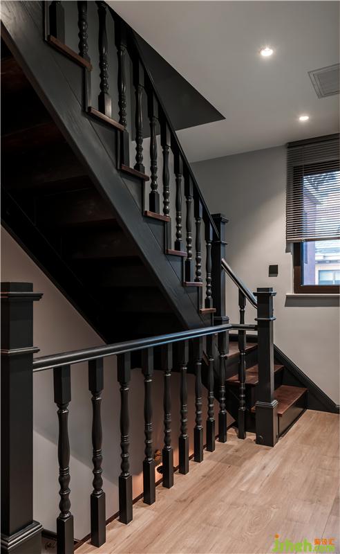 實(shí)木樓梯,全部都是深色系,展現(xiàn)古典式的優(yōu)雅,有扶手對(duì)于小孩子來(lái)說(shuō)是一個(gè)更安全的選擇。整個(gè)房間一共有三層,一層是客廳等公區(qū),二層是主人的臥室們和書(shū)房,三樓是一個(gè)小閣樓暫時(shí)作為儲(chǔ)藏間。