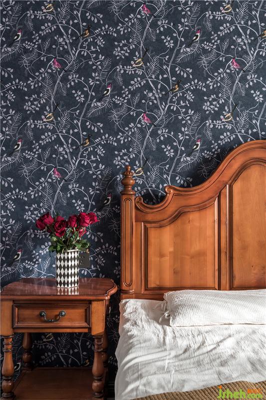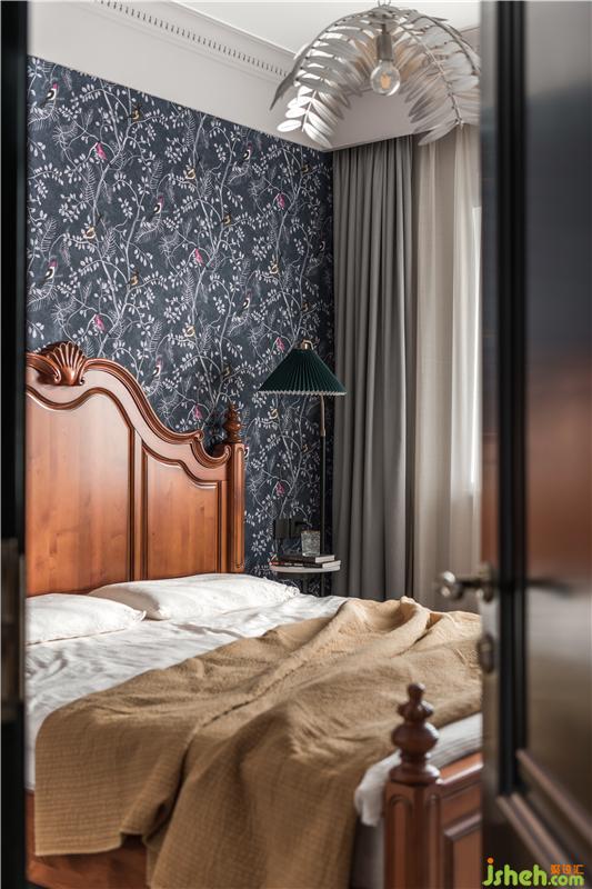 主臥最亮眼的顏色是背景墻,使用定制壁畫(huà),深藍(lán)色的枝葉與數(shù)只小鳥(niǎo),活潑優(yōu)雅,紋理質(zhì)感極好。與主臥的床搭配,天津別墅設(shè)計(jì)屬于復(fù)古的調(diào)性?xún)?yōu)雅蔓延。主臥的收納都隱蔽在沒(méi)拍到的另一面收納墻里。