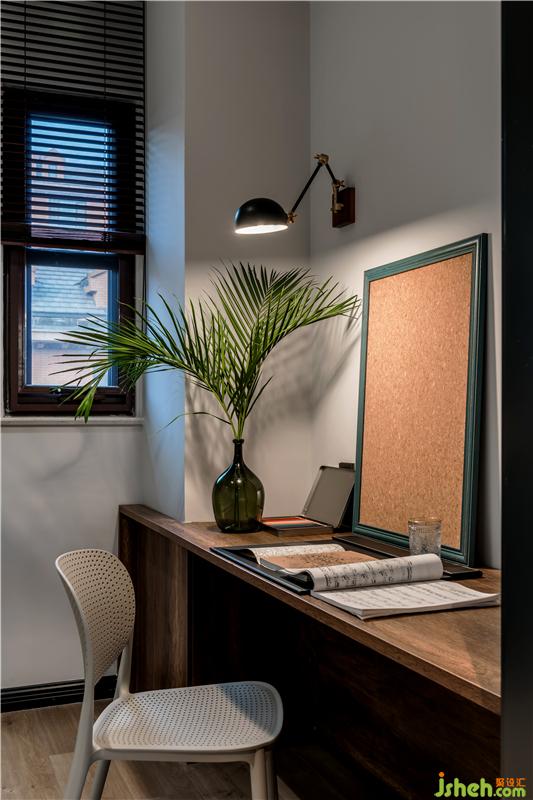 因?yàn)槟袠I(yè)主工作的關(guān)系,我們還在二樓也同樣設(shè)計(jì)了一間書(shū)房,天津別墅設(shè)計(jì)面積十分有限但還是放下了一張長(zhǎng)桌和移動(dòng)書(shū)架,甚至還有一架跑步機(jī)。小書(shū)房的訣竅大概是先裝滿,越用越大吧~