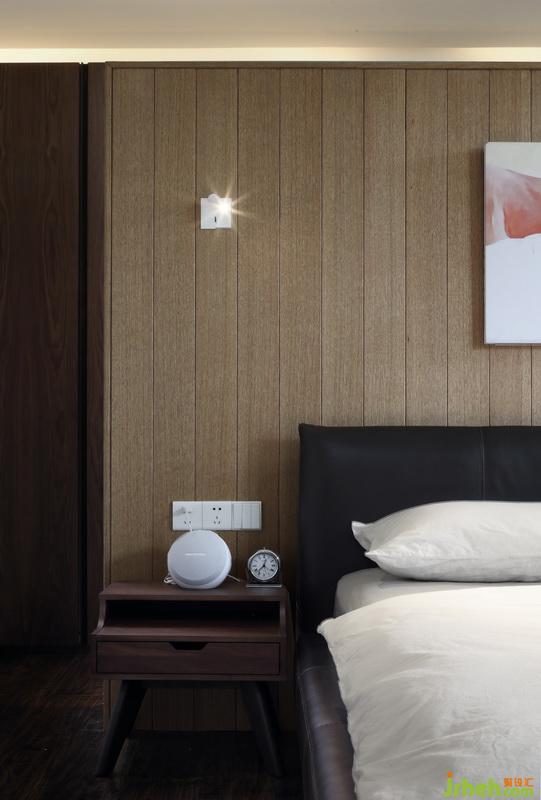 咖啡色調(diào)子和橡木暖色營造一個充滿靜謐感的睡眠空間
