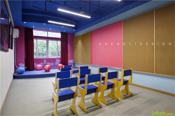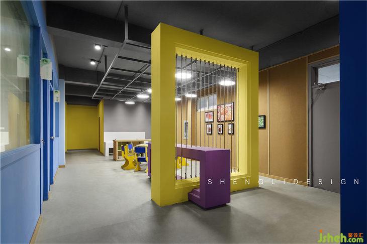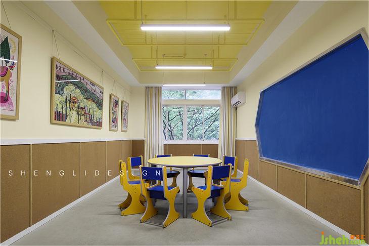 整個(gè)美術(shù)室以明快、清新、活潑的整體風(fēng)格設(shè)計(jì),迎合了少年兒童的心理,滿足孩子天性活潑的活動需求,營造輕松舒適的繪畫環(huán)境,桌椅和周圍的環(huán)境都充滿了童趣。
