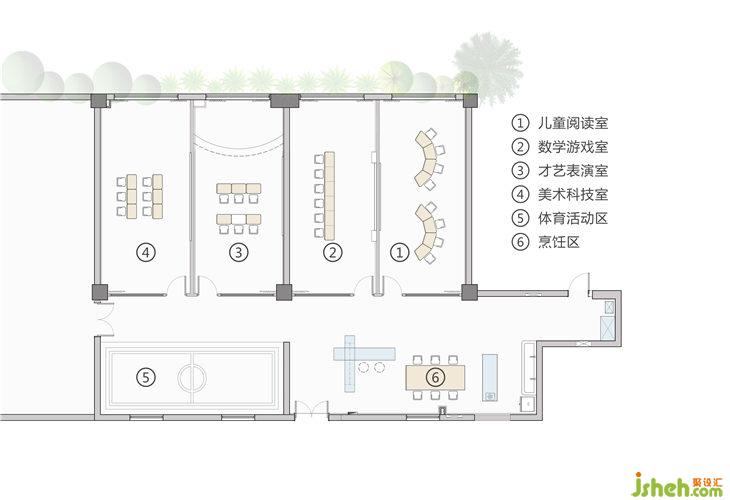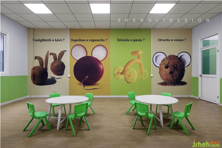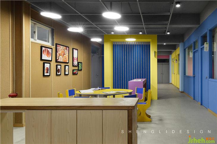 活動室是教學(xué)、活動表演、休息娛樂一體的,因此它的設(shè)計豐富多樣。
