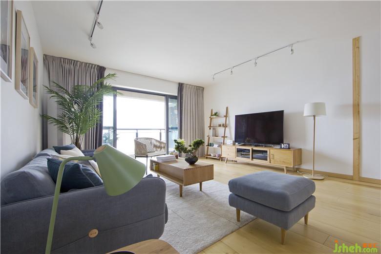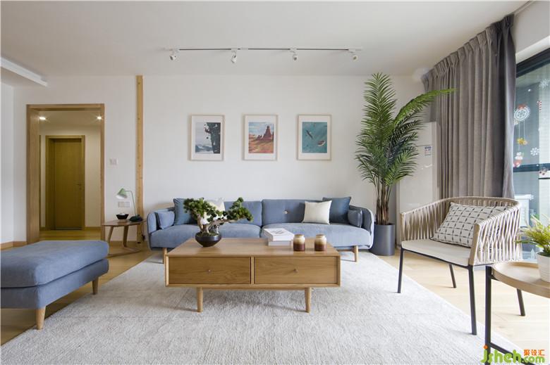 客廳空間方正空間大,布局上大方處理就好了,空間上主要注重軟裝的搭配和顏色的層次。白色墻面在桑拿板木條點綴下有一點靈動的色塊的,讓空間變的有趣味了。