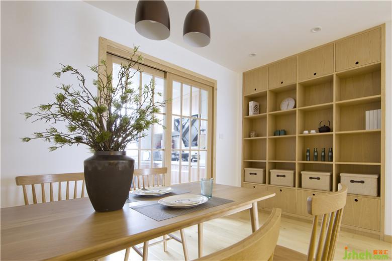 橡木框架的餐柜透著自然流暢的紋理,簡單好收納,木格推拉門隔開廚房的油煙的同時還有良好的導光性,進門那一片橡木裝飾墻將鞋帽間門客房門展示柜都一樣規(guī)整在一處了,是裝飾墻也是功能墻。