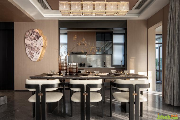 一層客廳中,黑與白,大地色與棕咖色,以穩(wěn)重之意聯(lián)名,別墅裝飾靈感卻自然乍現(xiàn)。紋理流“韻”,線條露“骨”。色彩輕疊搭,空間趣變幻,深色木紋與白色石材的色彩撞擊,是模擬墨色在白紙上揮灑過(guò)的極致。