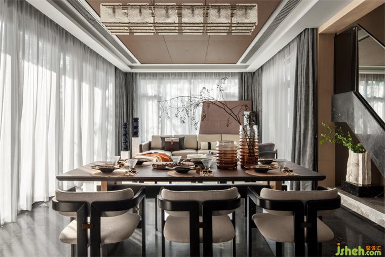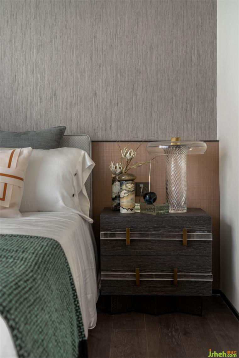 設計不可標簽化,秋日決不想被冠上沉重色彩的標簽。長輩房精心的布置在一層,別墅裝飾其采用大面積的低飽和綠,又如雨天桂林山水,霧氣朦朧里隱隱欣賞那一片綠。