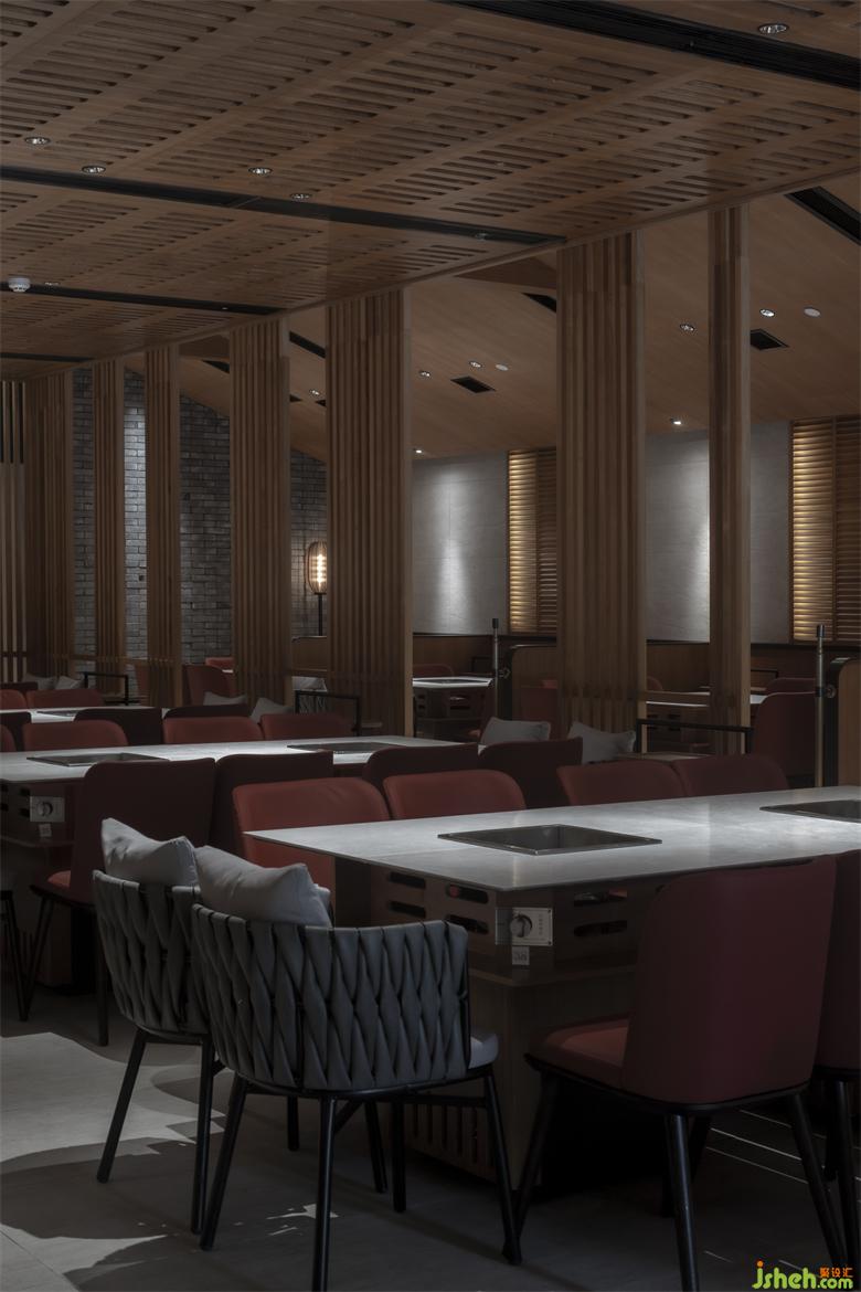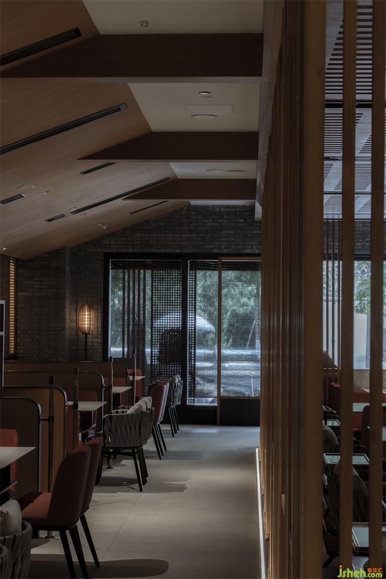 錦城印象成都餐廳設(shè)計(jì)高新店,是集嘉設(shè)計(jì)受委托進(jìn)行品牌升級(jí)改造的第二家錦城印象門店。項(xiàng)目毗鄰高新區(qū)in99商業(yè)綜合體,是錦城印象品牌每日營(yíng)業(yè)額冠軍門店,面積最小、上客率最高。在保證業(yè)態(tài)和高頻效翻臺(tái)率的同時(shí),成都餐廳設(shè)計(jì)師利用園林景觀的設(shè)計(jì)邏輯--「空間越拆越小,空間越隔越大」,在大廳兩側(cè)設(shè)置了木柵隔斷,擴(kuò)大空間視覺效果。