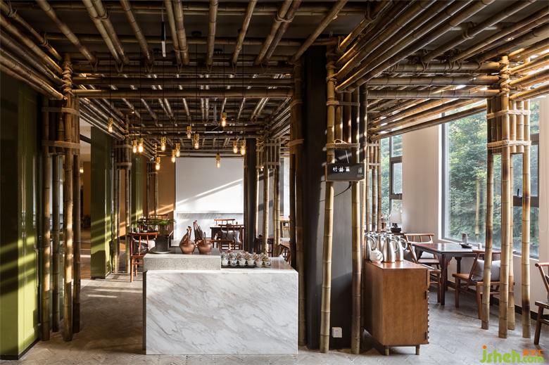 進入閑派,首先打造的是一個竹林茶室區(qū)。餐廳設(shè)計