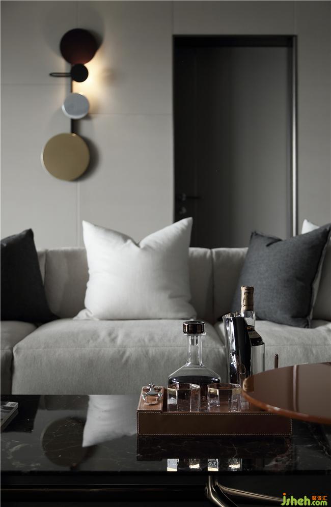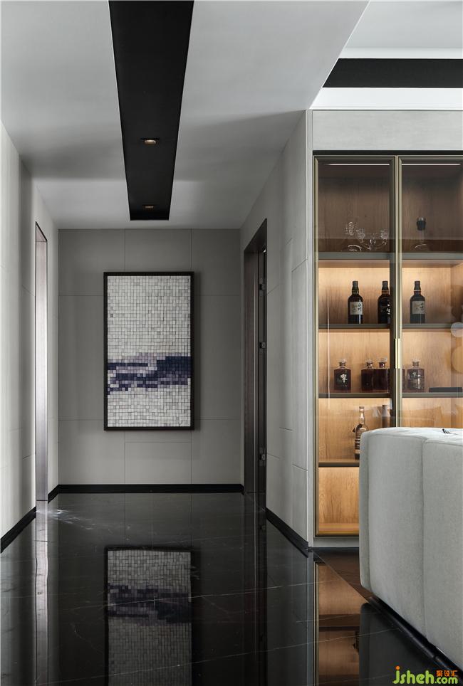 深色人字拼地板使整個客廳顯得神秘而又現(xiàn)代,