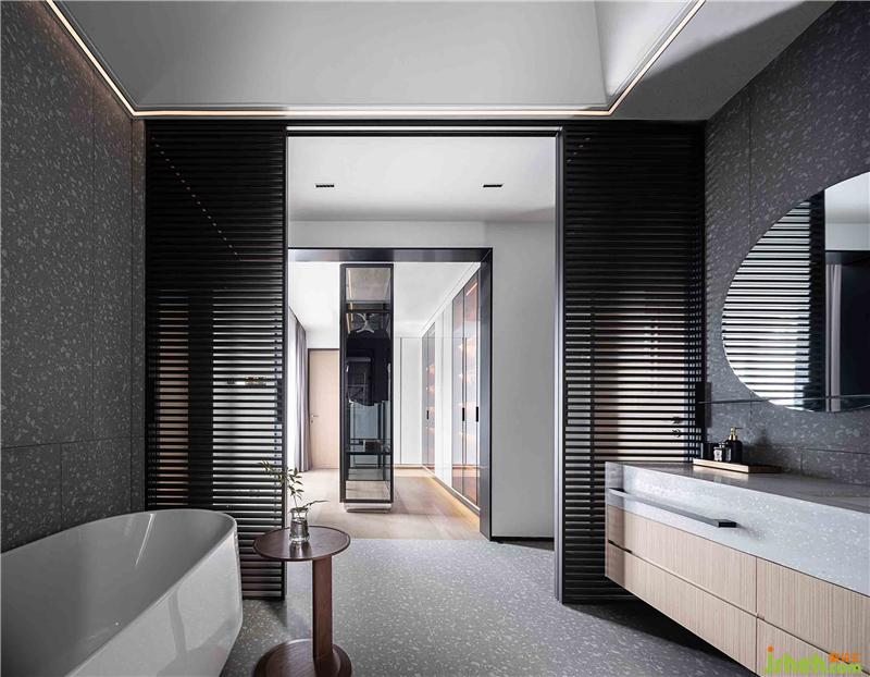 沐浴后,移門打開,豁然開朗,衣帽間映入眼簾,