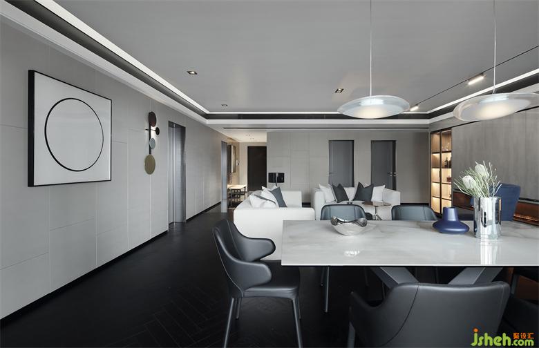 上海豪宅設(shè)計(jì)不同的幾何形狀貫穿著整個(gè)空間,