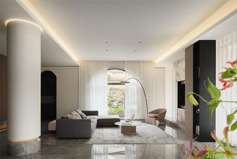 別墅裝修設計拱形落地窗融入將室外景框映成畫