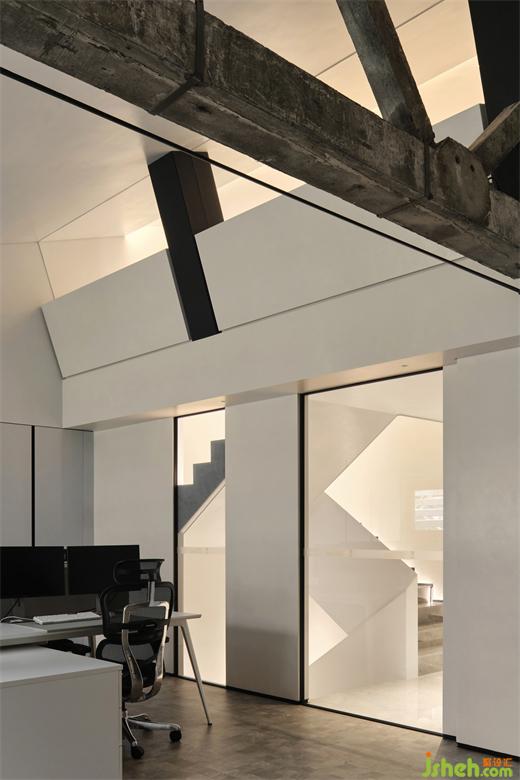 辦公室設(shè)計(jì)不同層次的肌理將我們的視線拉高聚焦