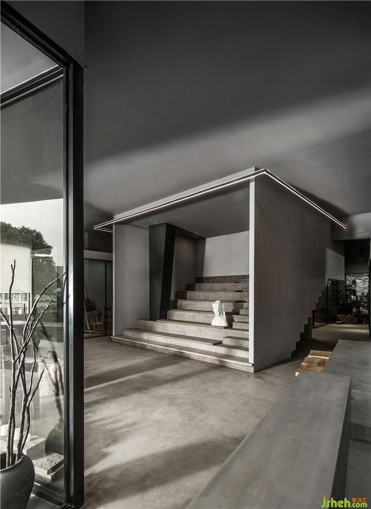 值得一提的是,改造前的空間由于過多的柱子遮擋了光線的進入,設計師將整個空間有計劃地聯(lián)系起來,使得光線能夠通過建筑結構傳遞到室內(nèi)的各個角落。在夕陽的照射下,整個藝術空間散發(fā)出獨特的魅力。