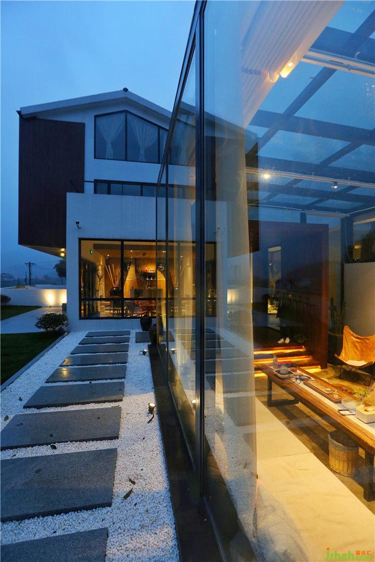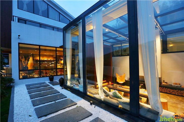 玻璃房內承載著一天的光影,下沉式的包圍空間讓氣氛更加濃厚,冬天里,圍著壁爐,擁著暖陽,與友人互相喝茶聊天,體驗悠閑自在的生活。