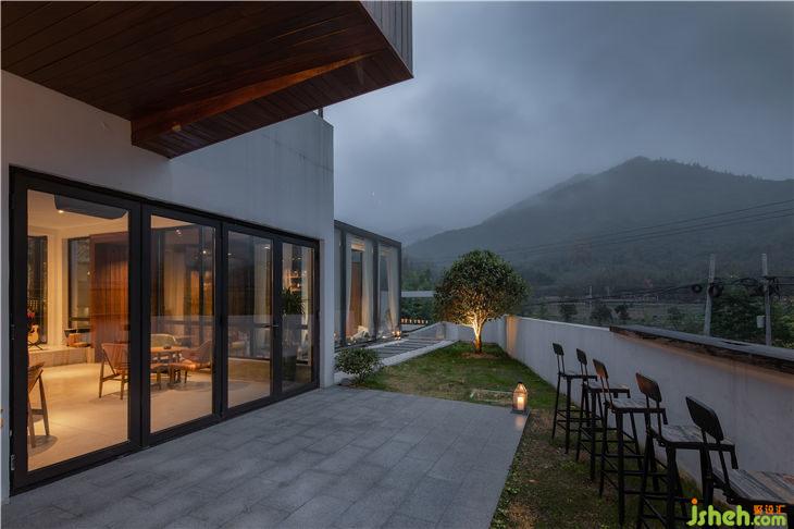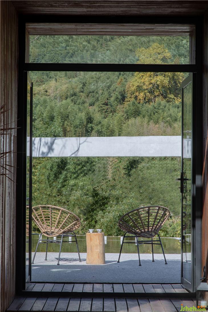 整個大廳將大面積的落地玻璃窗和玻璃門運用到極致,設計師不希望門外的山野之色被厚重冰冷的墻體阻隔,而是希望眼睛所觀之處皆是山野綠色,即使不走出室外也能將山林景色攬入懷中。