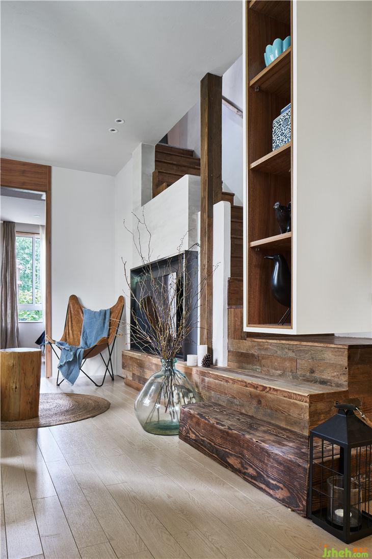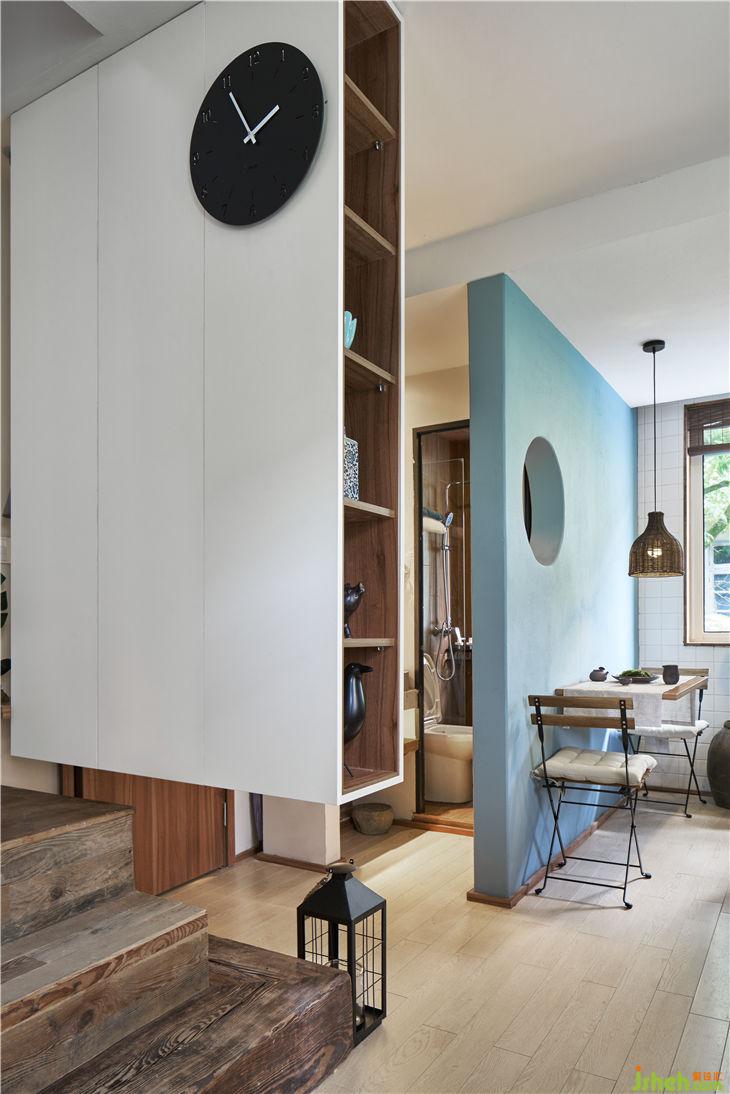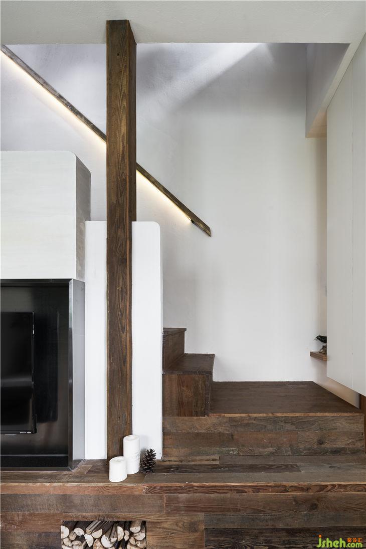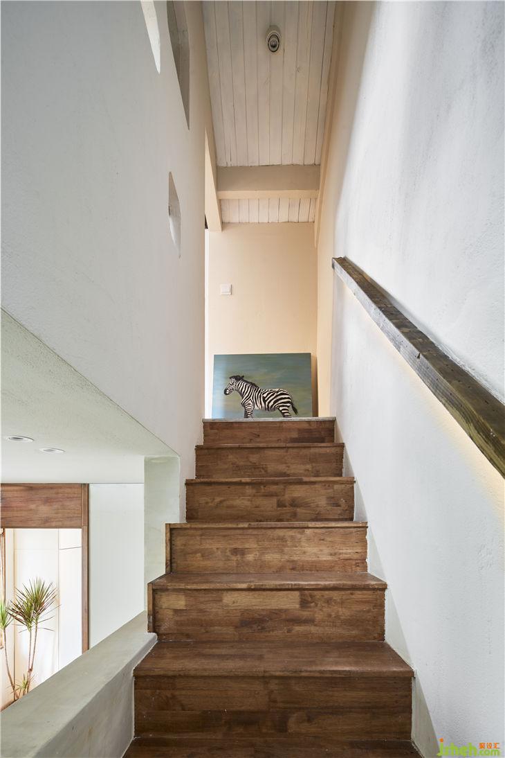 入戶通過一個懸空的體塊,加強體塊感并且多功能儲藏。通過體塊間的穿插實現(xiàn)客廳與樓梯間的對話,重新規(guī)劃的樓梯區(qū)域更像是一條時光隧道,充滿年代的回憶。布滿歲月痕跡的老木頭與當代不斷碰撞,現(xiàn)代建筑語匯與低度設(shè)計空間的對話。閣樓重新做了利用,增大了開窗,做了大型儲物的套房。建筑上最大化采光和通風(fēng),營造愉悅自在的生活狀態(tài)。