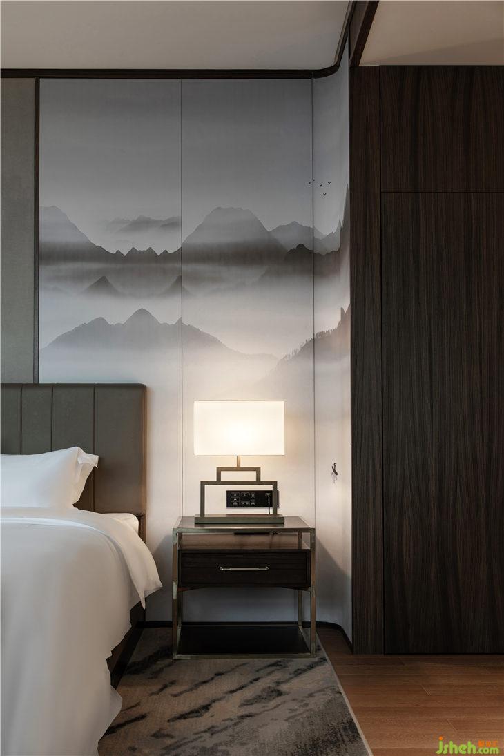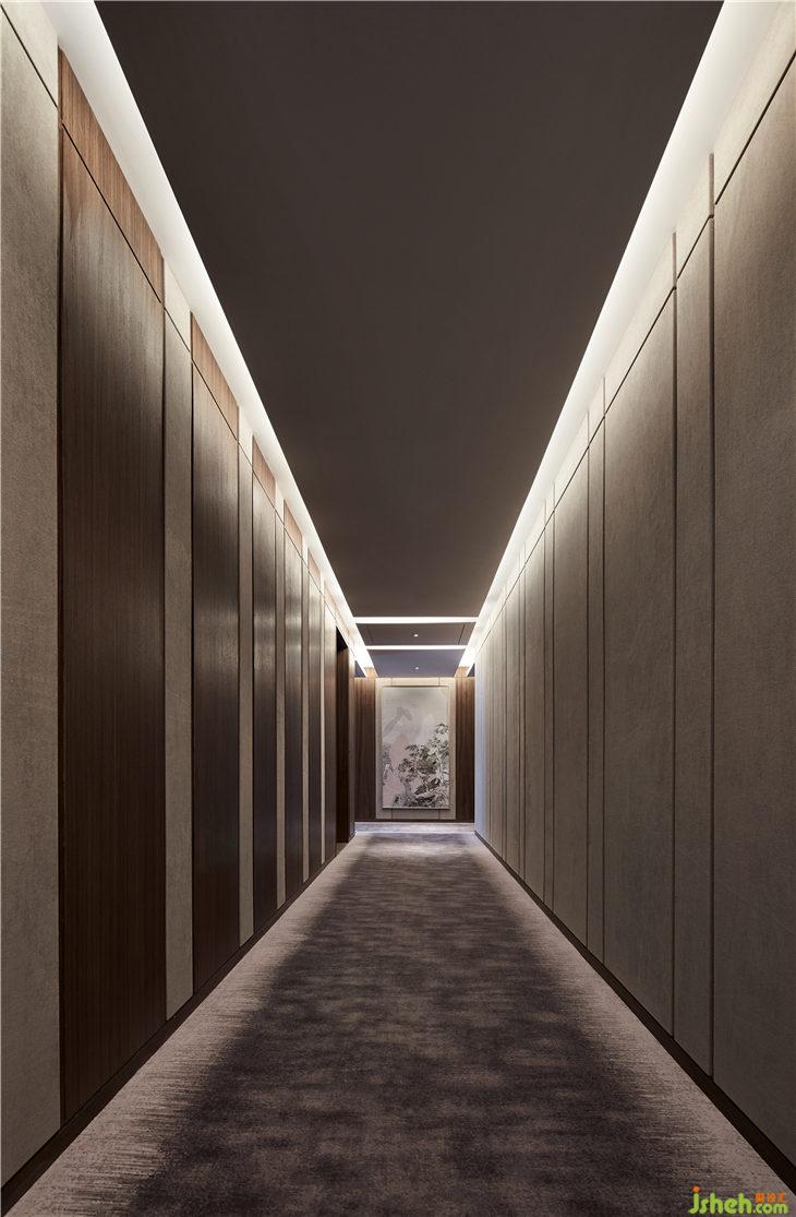 走廊地毯有著松針覆蓋地面的意象,設(shè)計(jì)師希望賓客踩在松軟的地毯上,猶如在自然中行走。墻上松樹圖案的藝術(shù)品與空間相得益彰,展現(xiàn)了絕佳的品位與品質(zhì)。