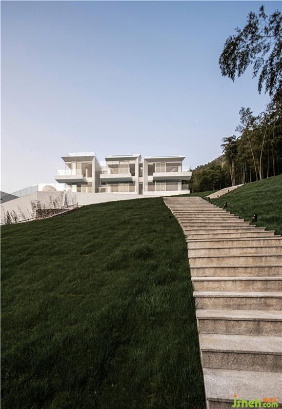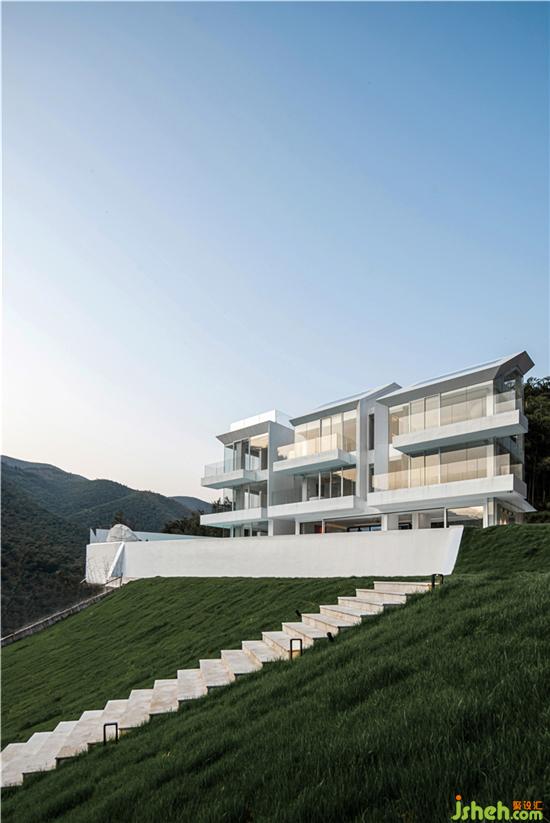 The hotel was built in this natural landscape, pure and independent in its all-white architecture. Because the building is located on a hillside, shen mo, the designer, takes measures according to local conditions, laying out a stepped walkway leading to a high place, where you need to pass through a "box" to enter the house, greet guests with a sense of ceremony, and ascend the steps to the destination.
