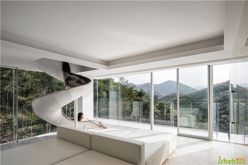 二層另外兩個房間均為loft形式,不僅可以看到夜晚的星空,還能體驗滑滑梯的樂趣,在大自然中嬉戲,享受簡單的平衡與自在感。