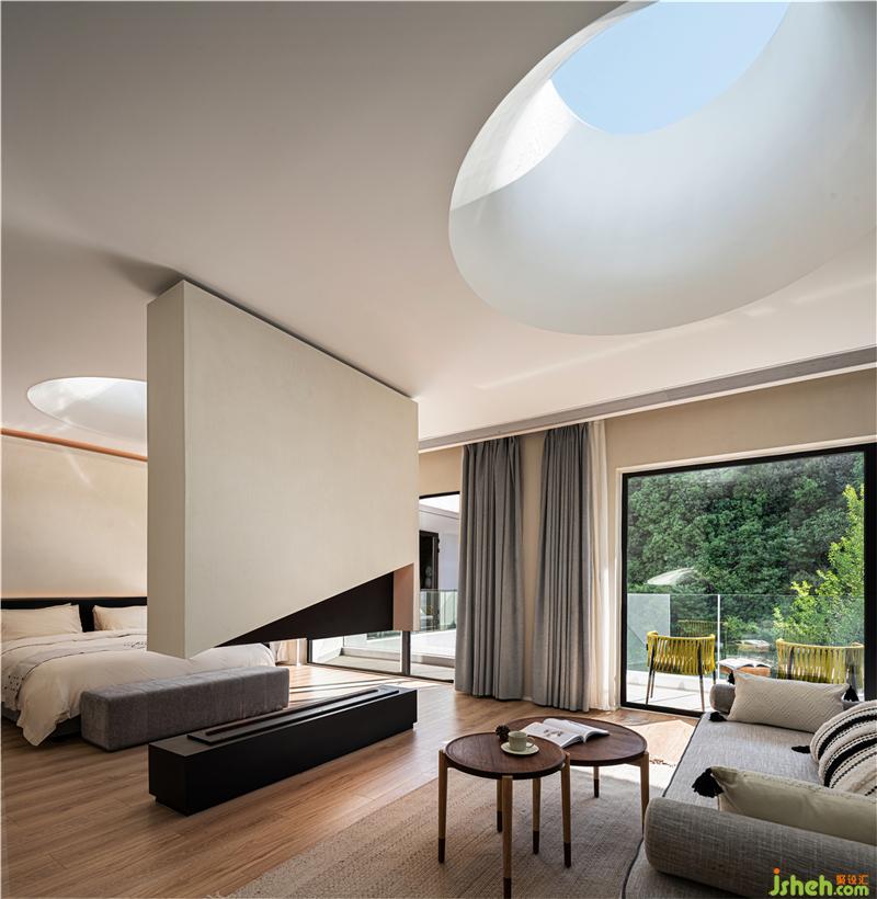 民宿主希望在這樣一片自然環(huán)境中,建筑能夠盡大可能地?fù)肀ё匀?,純澈,透明,設(shè)計(jì)師沈墨與陶建浦便以“杉里看云,云里看山”為主題,打造出了一個(gè)全新的建筑。