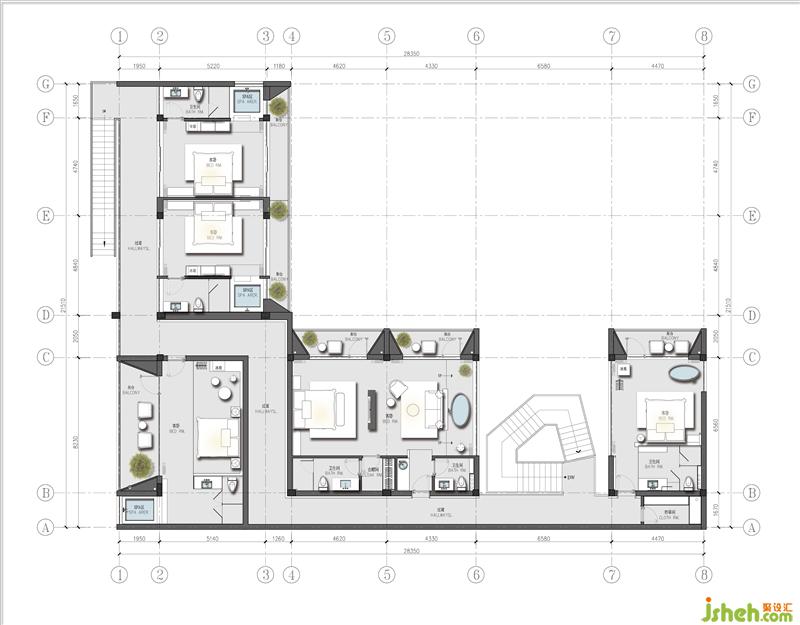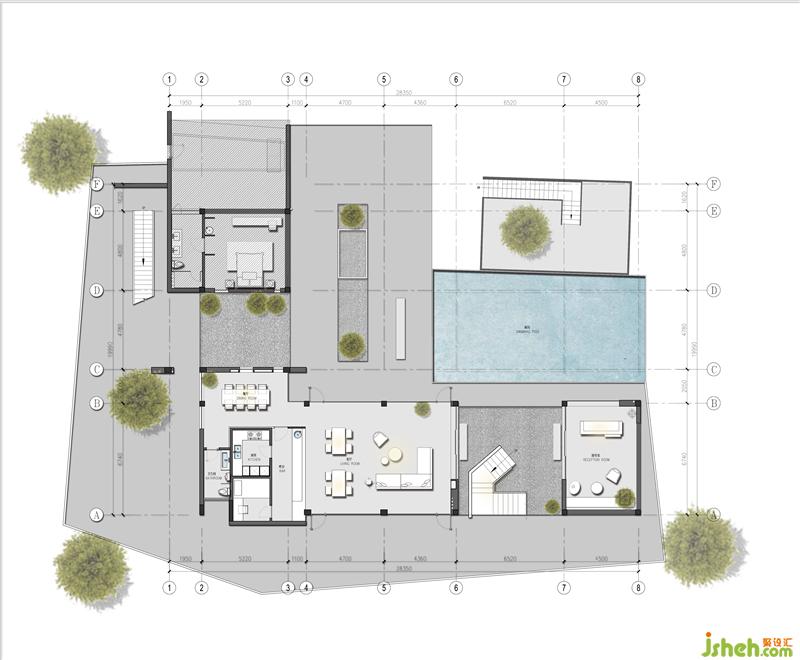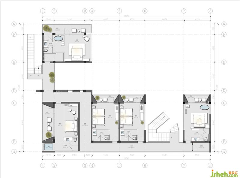 設(shè)計師希望每間房都能映出室外的風(fēng)景,房間有著270°落地玻璃窗,空間變得通透純凈。