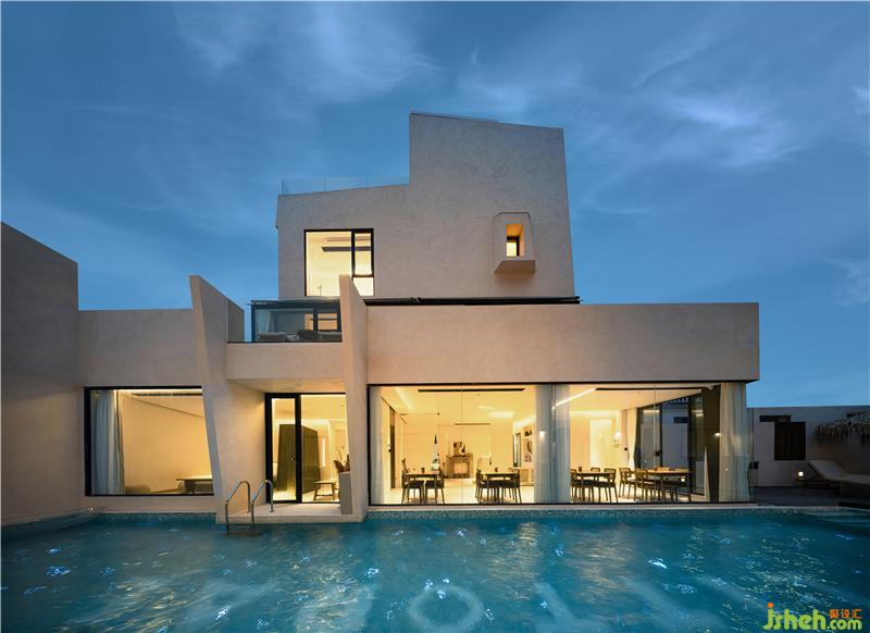 設(shè)計(jì)師讓建筑擬化成海岸邊的一塊礁石,將斜切面的元素延用至空間的每一處細(xì)節(jié)中。打破建筑傳統(tǒng)四方的概念,建筑在擁有功能性的基礎(chǔ)上能夠與自然相結(jié)合,顯得獨(dú)具一格。