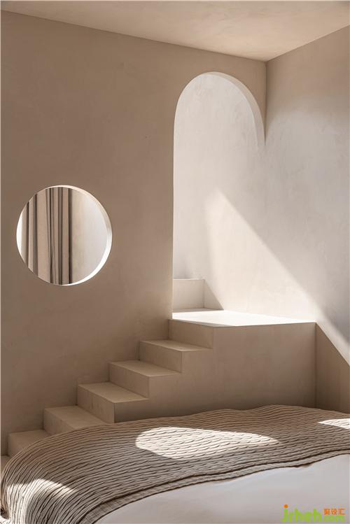 一進(jìn)入空間,轉(zhuǎn)角處的休息區(qū)種植著仙人掌等等熱帶植物,粗獷的陶罐與米色涂料搭配讓人不自覺產(chǎn)生了仿若在沙灘上度假的感受。